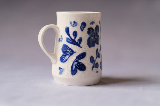 Blue and White Carved Mug