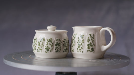 Carved Cream and Sugar Set - Green