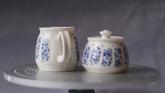 Carved Cream and Sugar Set - Blue